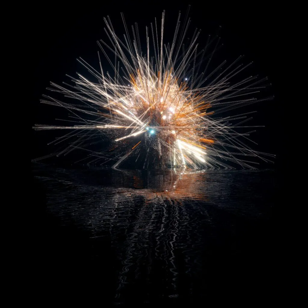 It uses data, among other sources, from [the internet map] to generate all the root points of generated meshed. The idea is to show the overwhelming intensity of internet activity in a way that is not informative but rather crazed and subjective. This complex and abstract shape ressembles in some way a biological virus which was the objective.